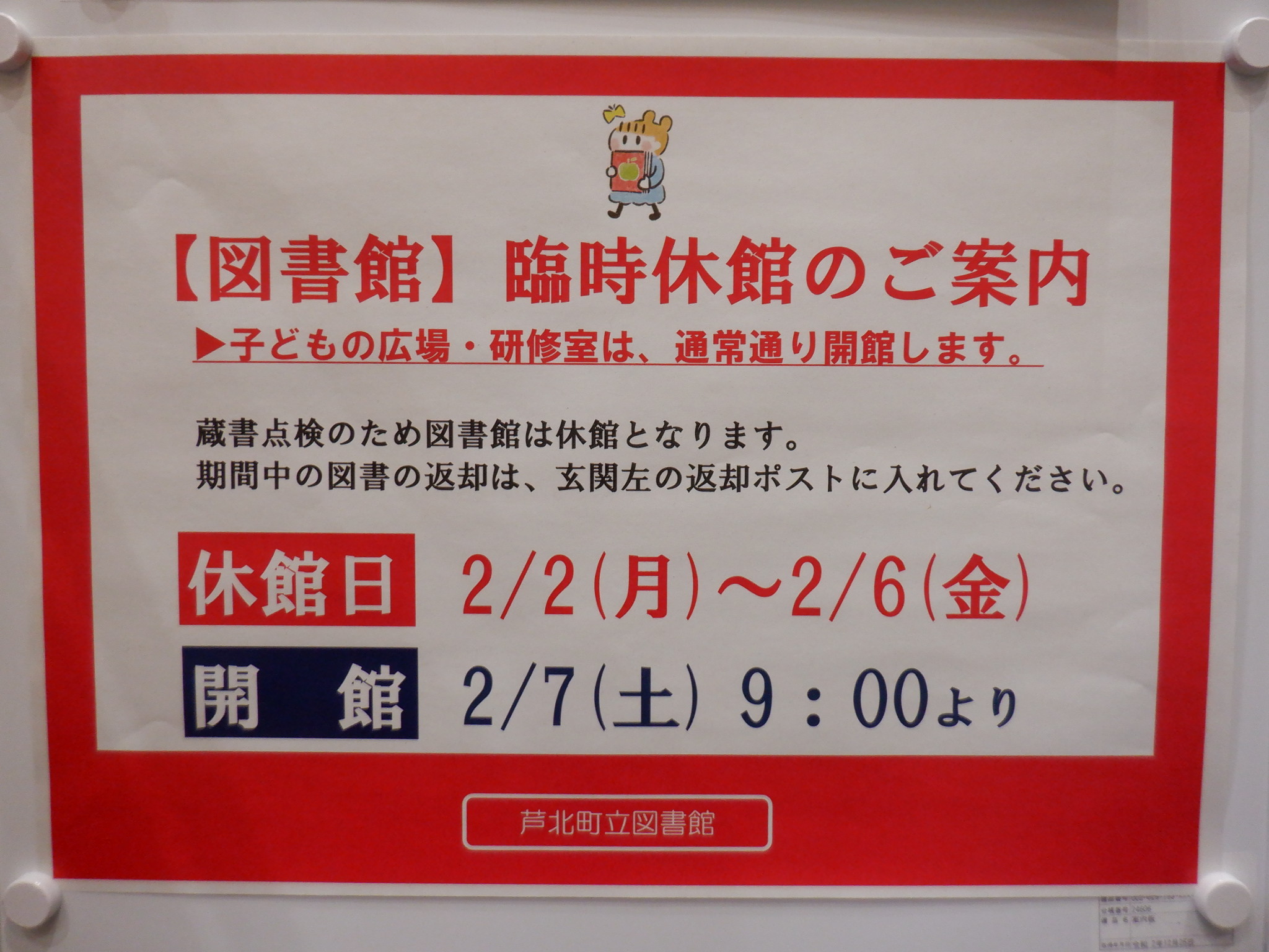 ※蔵書点検のため、上記期間は休館となります。よろしくお願い致します。