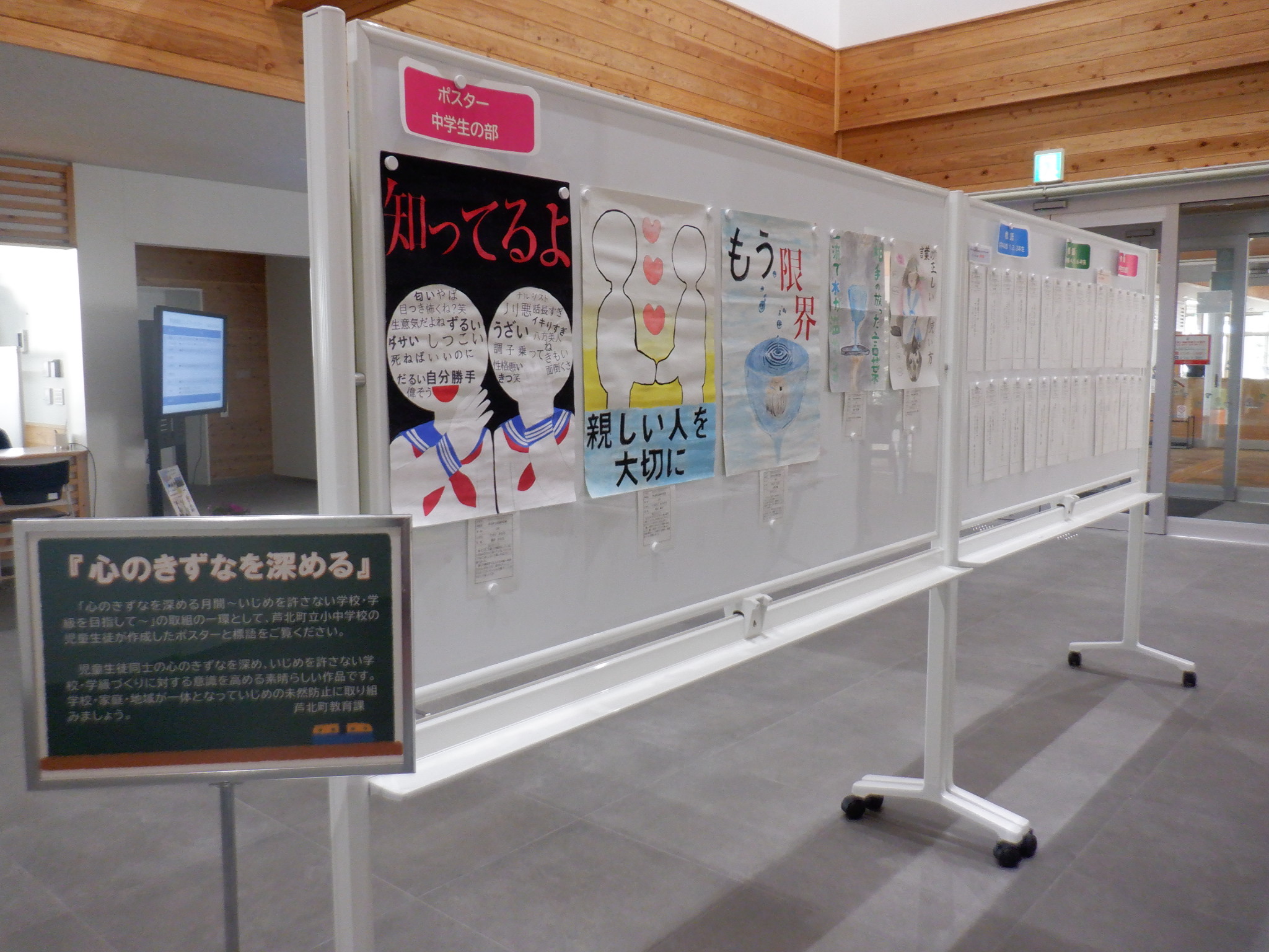 『 心のきずなを深める 』ためのポスターと標語作品を展示しています。