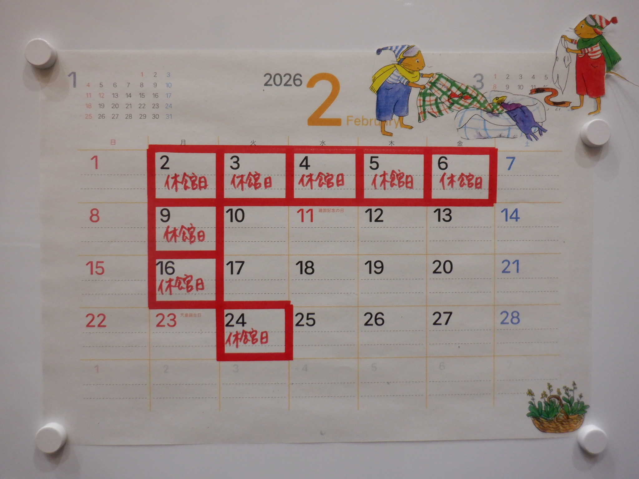 đŸ‘š 2月の開館案内です。