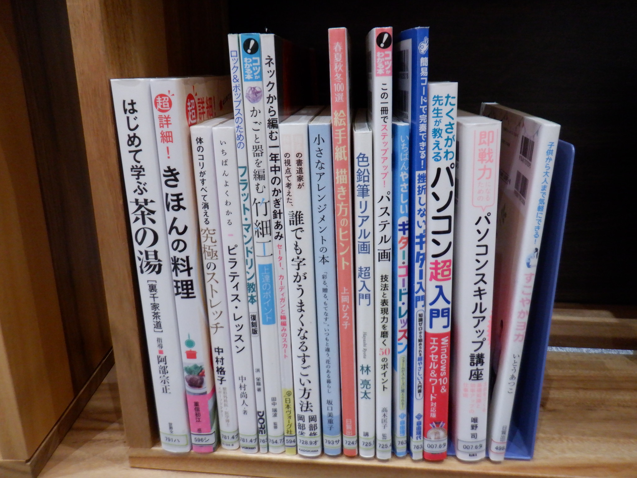 茶道/相撲甚句/料理/ストレッチ/マンドリン/トールペイント/パッチワーク/華道/竹細工/編物/着物着付け/ペン字/ティラピス/ヨガ/絵手紙/色鉛筆・クレパス画/大正琴/健康太極拳/フラワーアレンジメント/パソコン/3B体操/クラシックギター