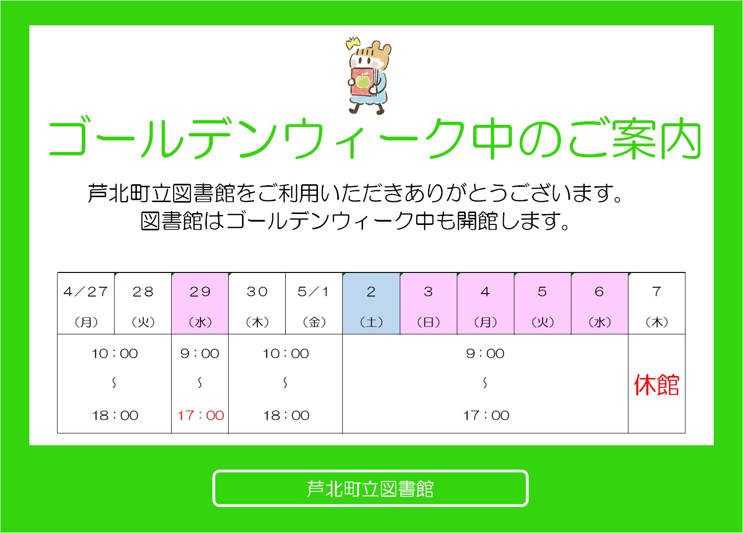 ▶ゴールデンウィーク期間中の開館案内